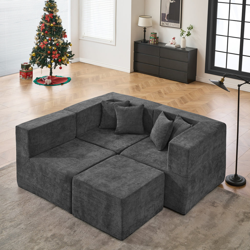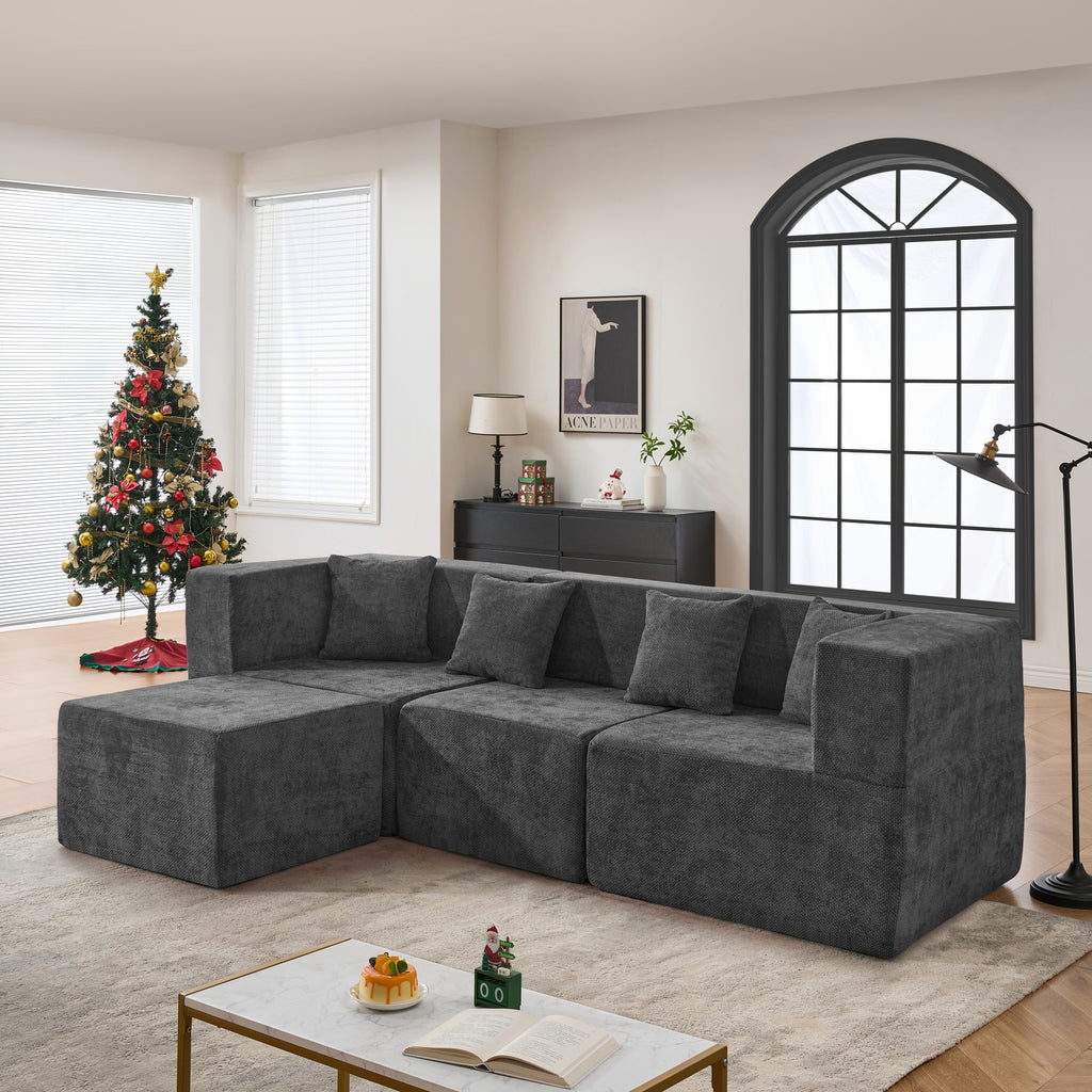 BEHOST 102.5" L-Shaped Cloud Couch Modular Sectional Sofa for Living Room, Dark Gray Chenille Fabric Sofa Couch with Ottoman and 4 Pillows, No Assembly