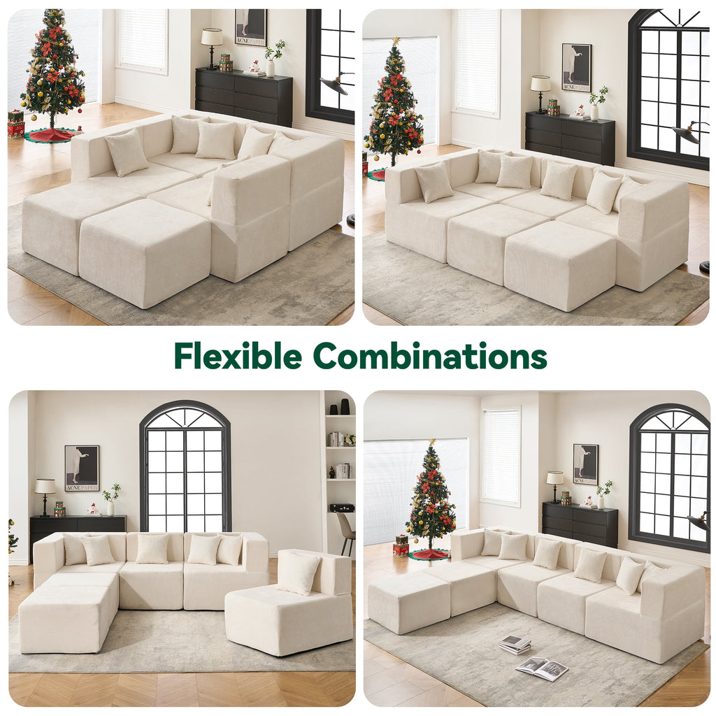 - Modular & Convertible Layout: Arrange it your way—L-shape, u shaped sectional, or a bed-like modular couch. This 6-piece convertible sofa is ideal for changing needs, offering a customizable sofa set for living room to suit any lifestyle or space.