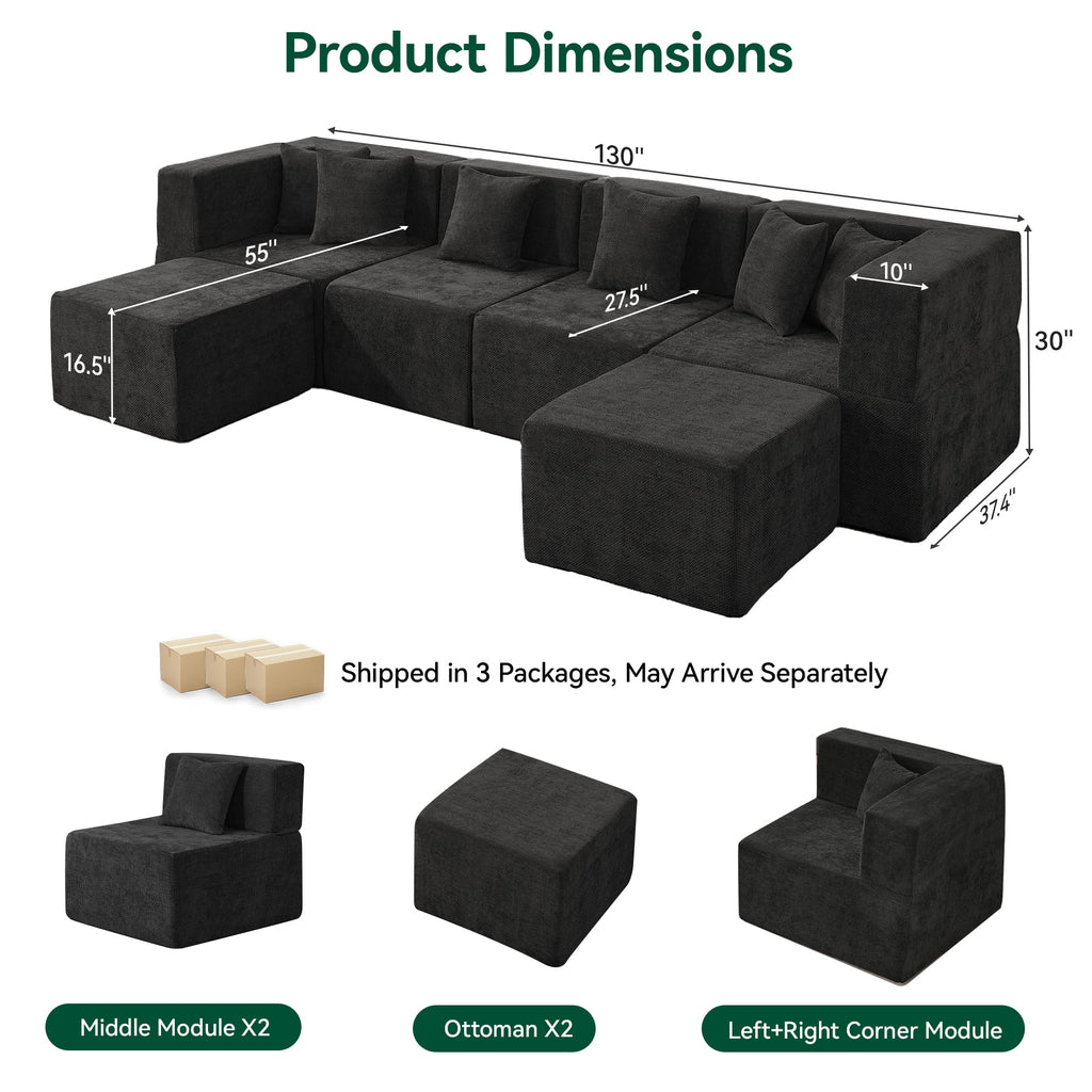 BEHOST 130" Oversized Modular Sectional Sofa for Living Room, Flexible Combination U Shaped Chenille Cloud Couch, Black