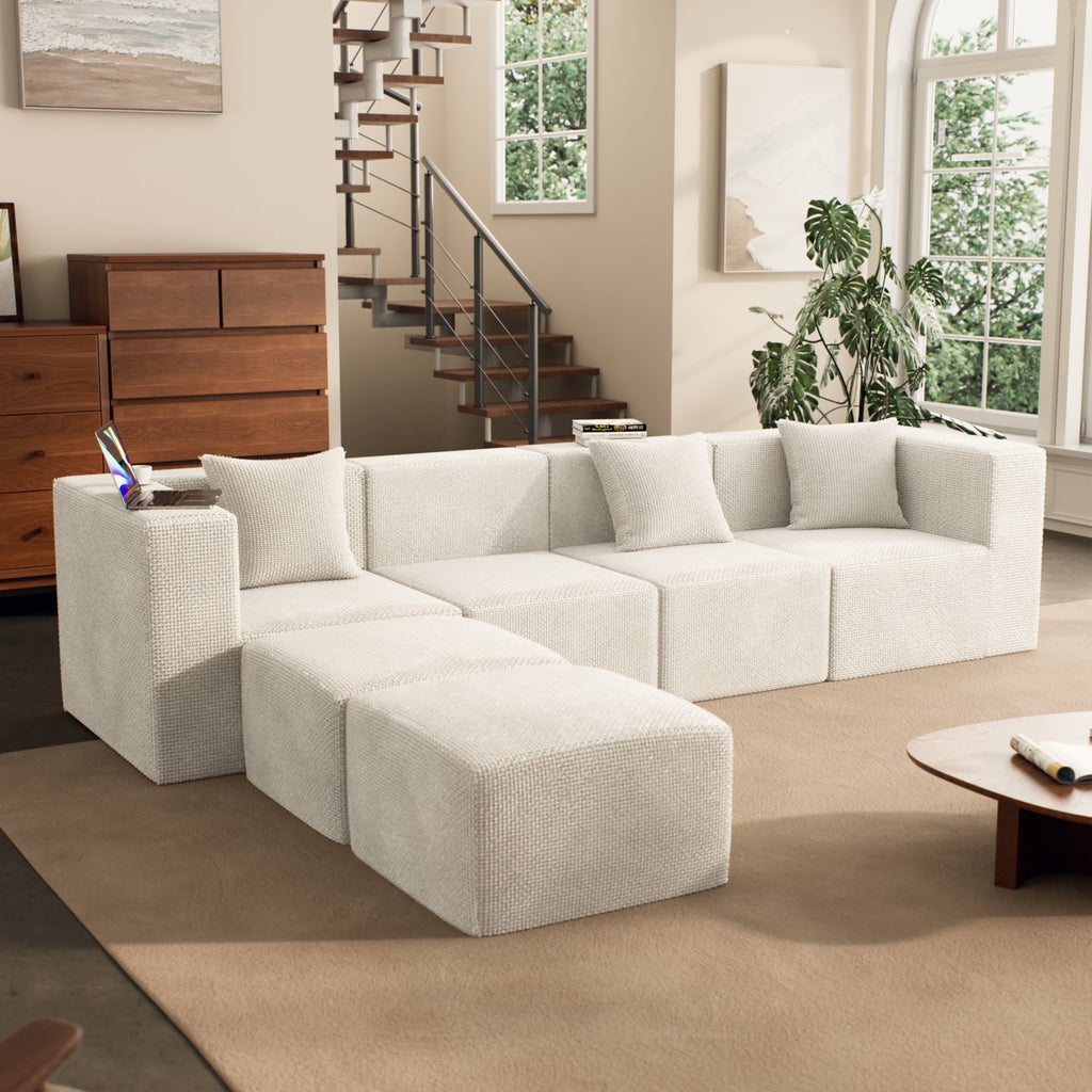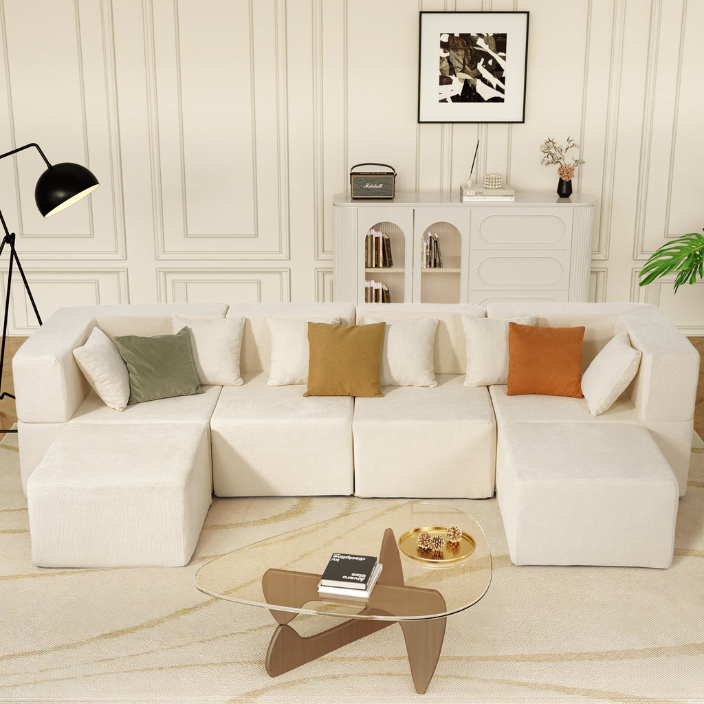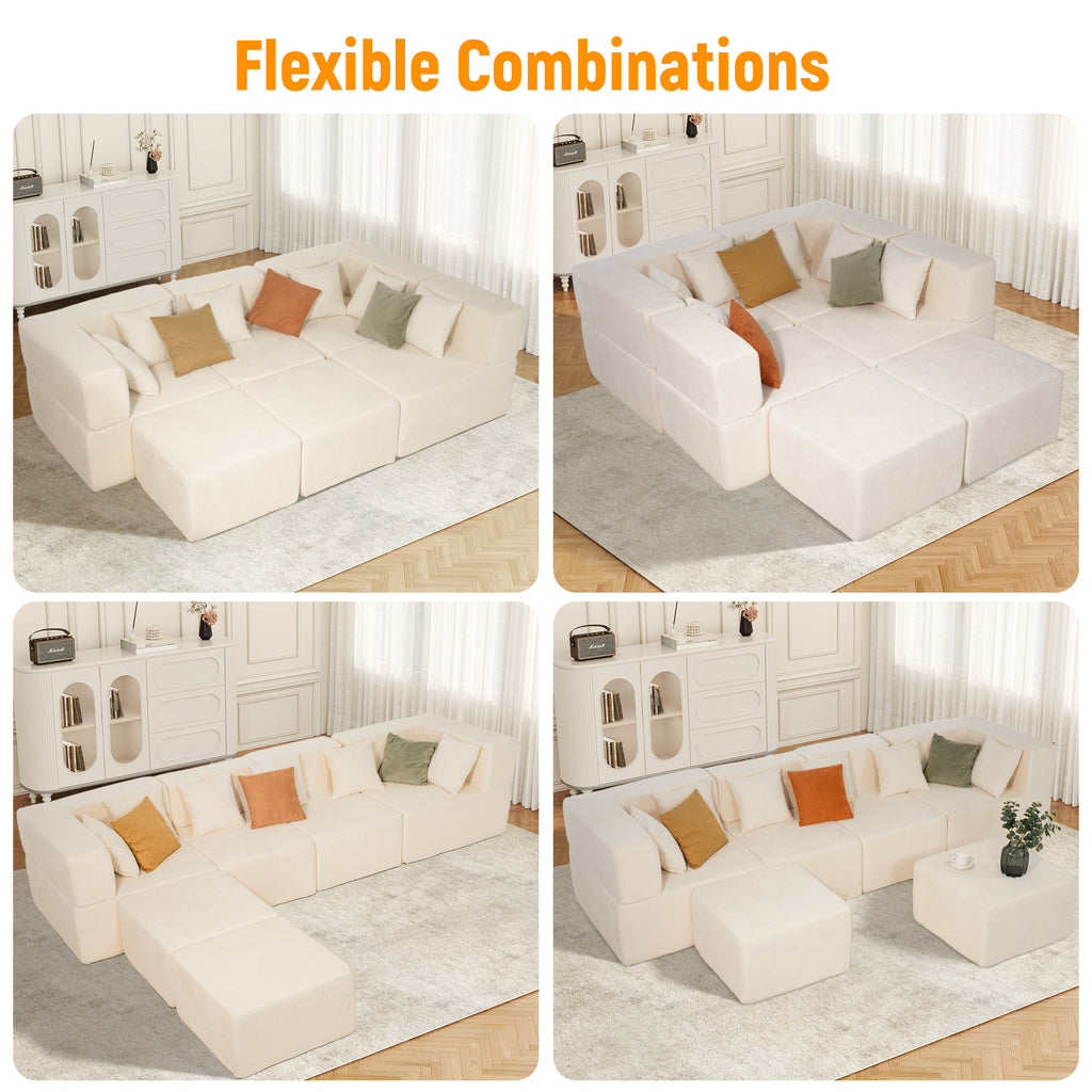 Beige Modular Sectional Sofa, Oversized Chenille Cloud Sofa Set with Ottomans