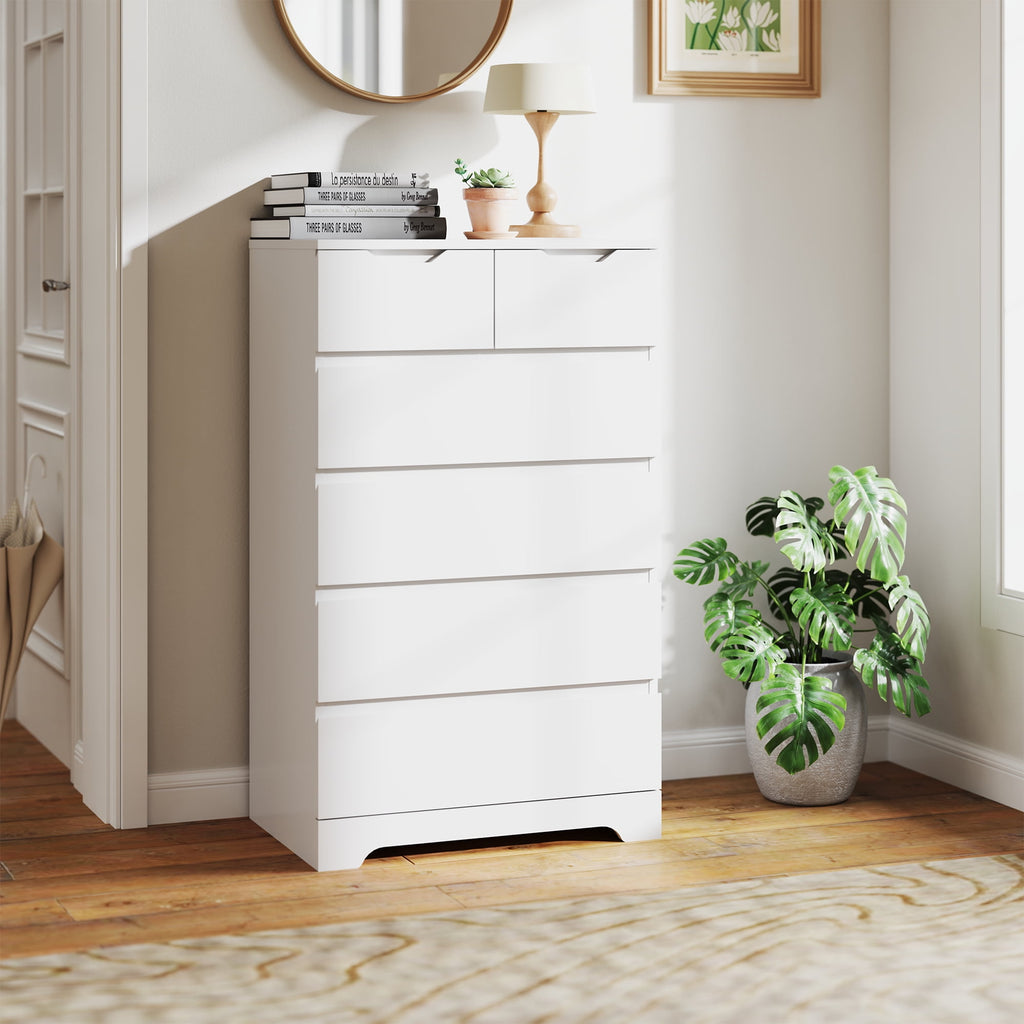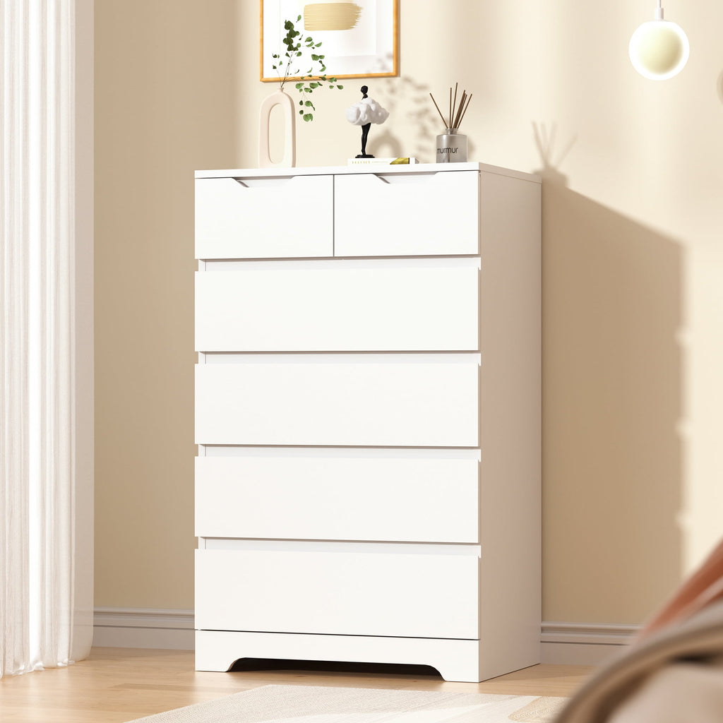 Eunon 6 White Drawer Dresser, Wood Storage Chest Organizers ,Chests of Drawers with Large Organizer for Bedroom Living Room