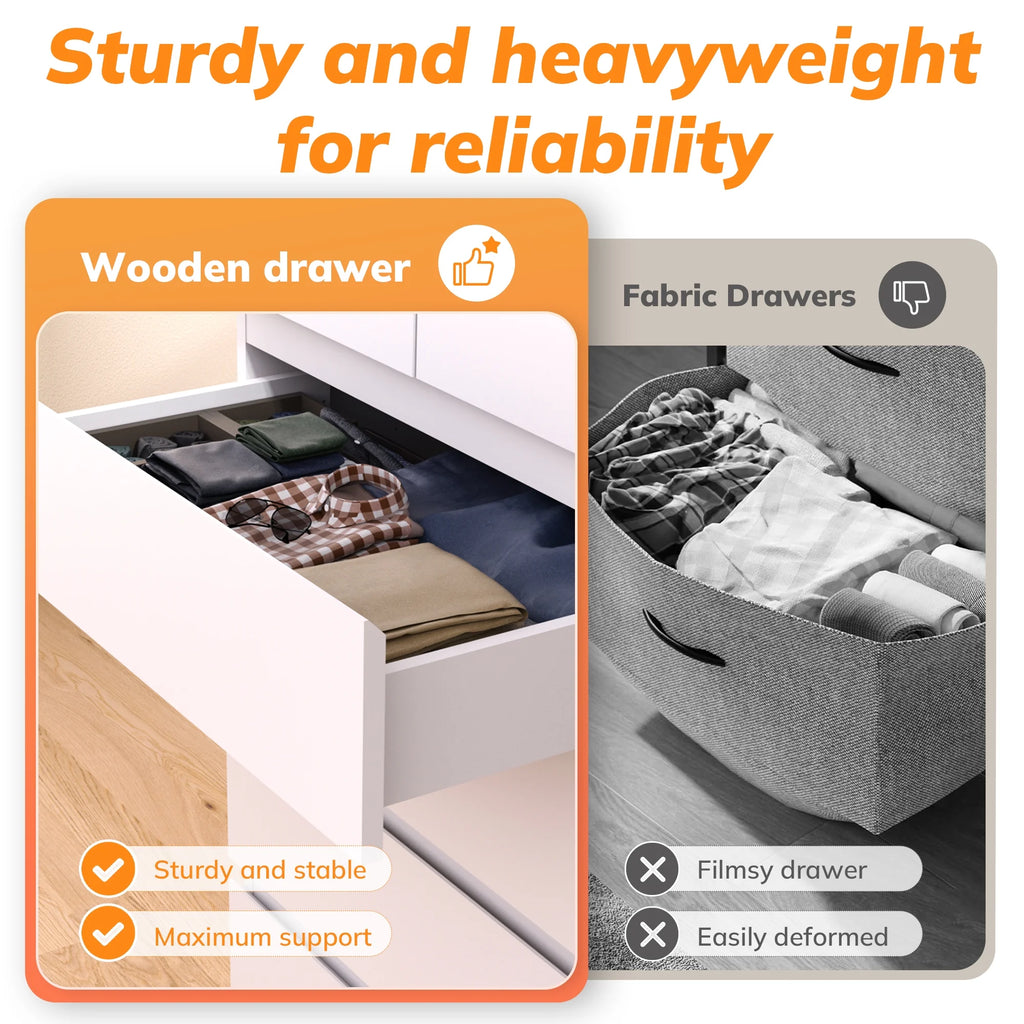 - Space-Efficient Design: This bedroom dresser is compact yet offers ample storage for clothes, accessories, and toys, helping maintain a tidy room.