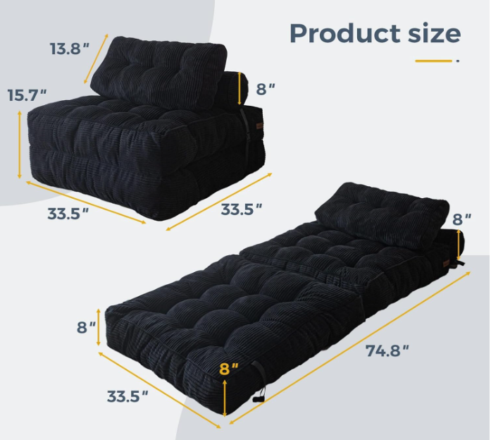 The "in seconds" part is no joke. It literally takes me 5 seconds to switch from couch to bed. It's so simple and the mechanism feels solid. No clunky parts to struggle with.