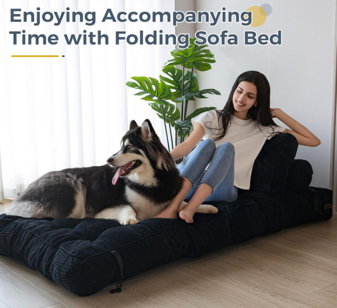 Folding Sofa Bed, 78" Convertible Sleeper Chair with Pillow for Living Room & Bedroom, Black
