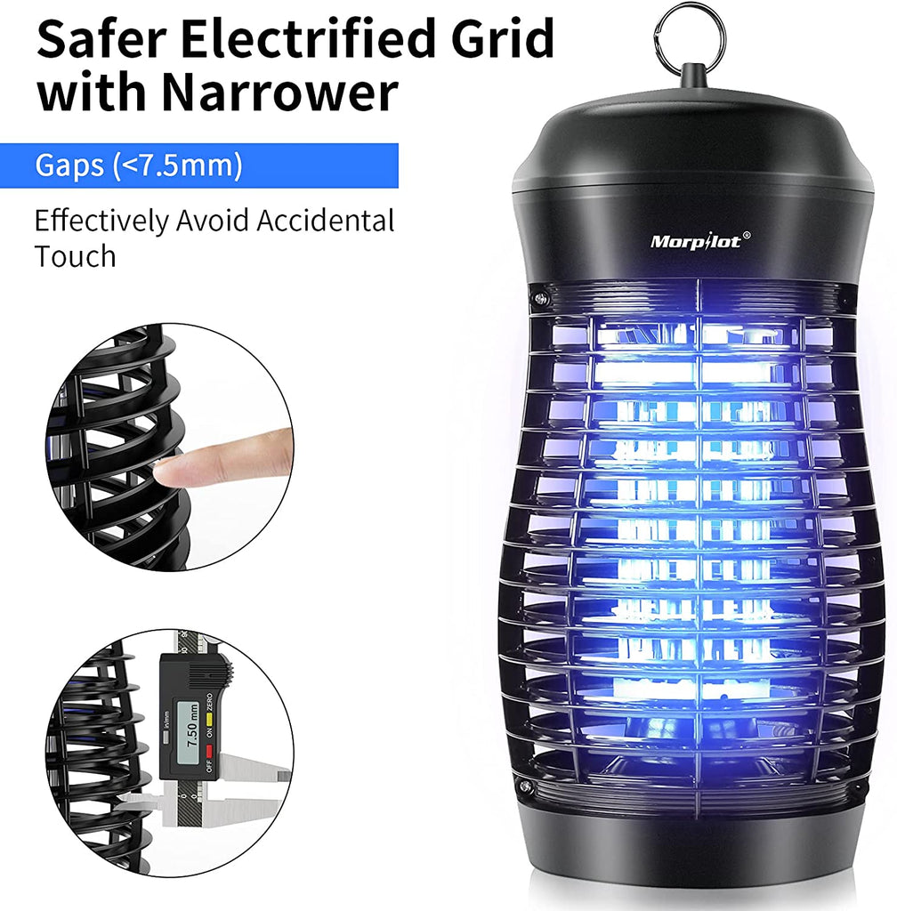 - 【4200V GRID 】:Impressive 4200V grid with 3-4 times higher power than alternative bug zappers, provides more reliable and effective indoor and backyard bug control. non-clogging killing grid. 2000 SQ FEET COVERAGE. non-clogging killing grid. This Morpilot mosquito zapper keeps bugs away within a massive 2000 square feet radius.