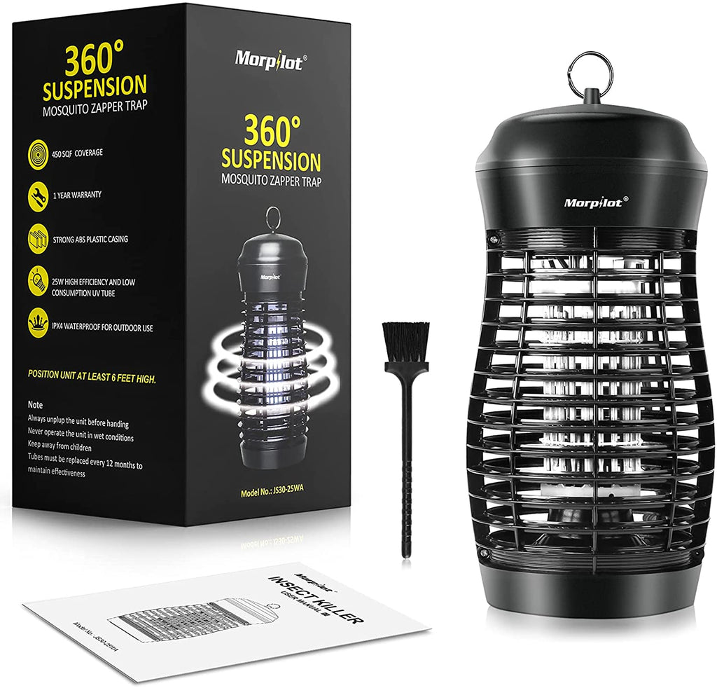 - 【25W UV light】:The Morpilot mosquito zapper uses 25W UV light to attract mosquitoes, gnats, Aedes mosquitoes,flies, moths and other insects. Then the high voltage grid will trap and electrocute these insects immediately, provides a healthy and comfortable environment for you.