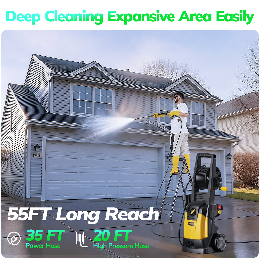 ✅Extended Reach: A 35FT power cord and 20FT high-pressure hose give you unmatched mobility to tackle large areas effortlessly.